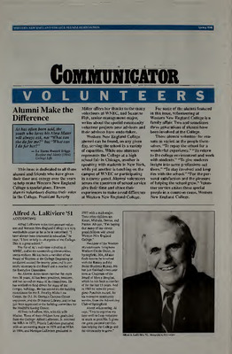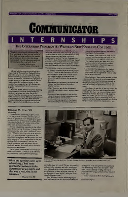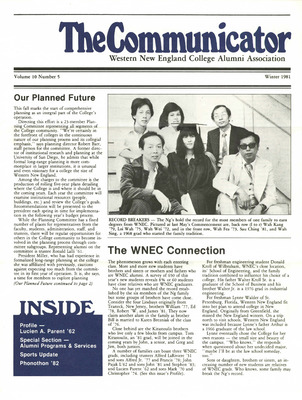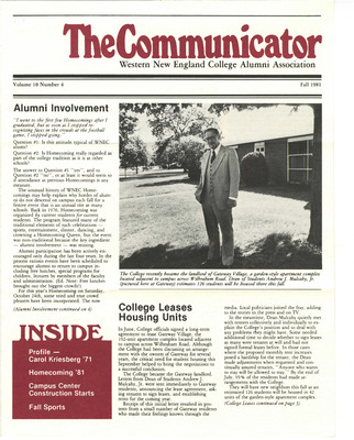 The Communicator has been the alumni magazine for the general alumni population of Western New England since the fall of 1972. In 1991, the publication underwent a redesign and transformed from a newletter to a more formal magazine publication