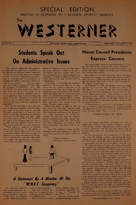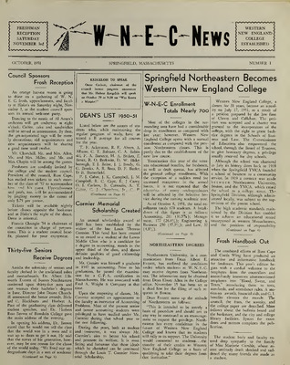 The Western New England University Student Newspapers Collection contains newspapers written and published by the students of Western New England. Founded as The Nor’easter, students at Western New England University have been publishing their student run newspaper since its inaugural issue in November of 1935. The paper was renamed W.N.E.C. News from 1951-1964, then The Westerner from 1964 to the present day.