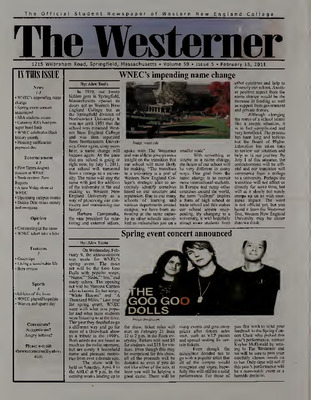 The Westerner, the newspaper of Western New England College, is published twice each month, thirteen times each school year.